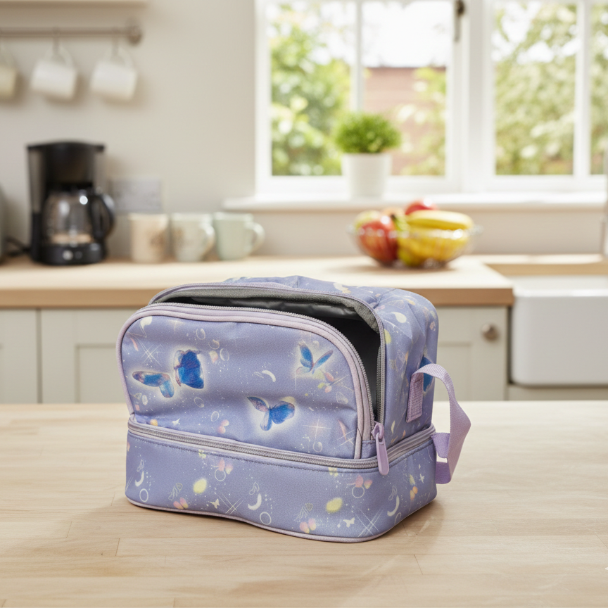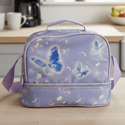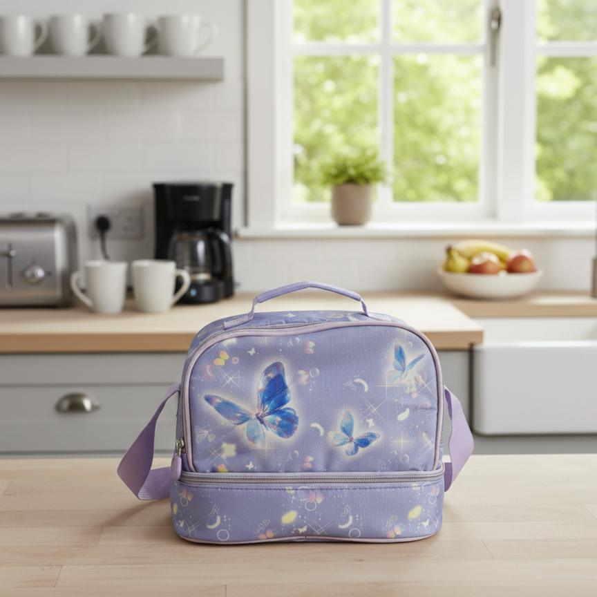 Kids Double Wall Insulated Lunch Bags With Multiple Sections (Butterfly)