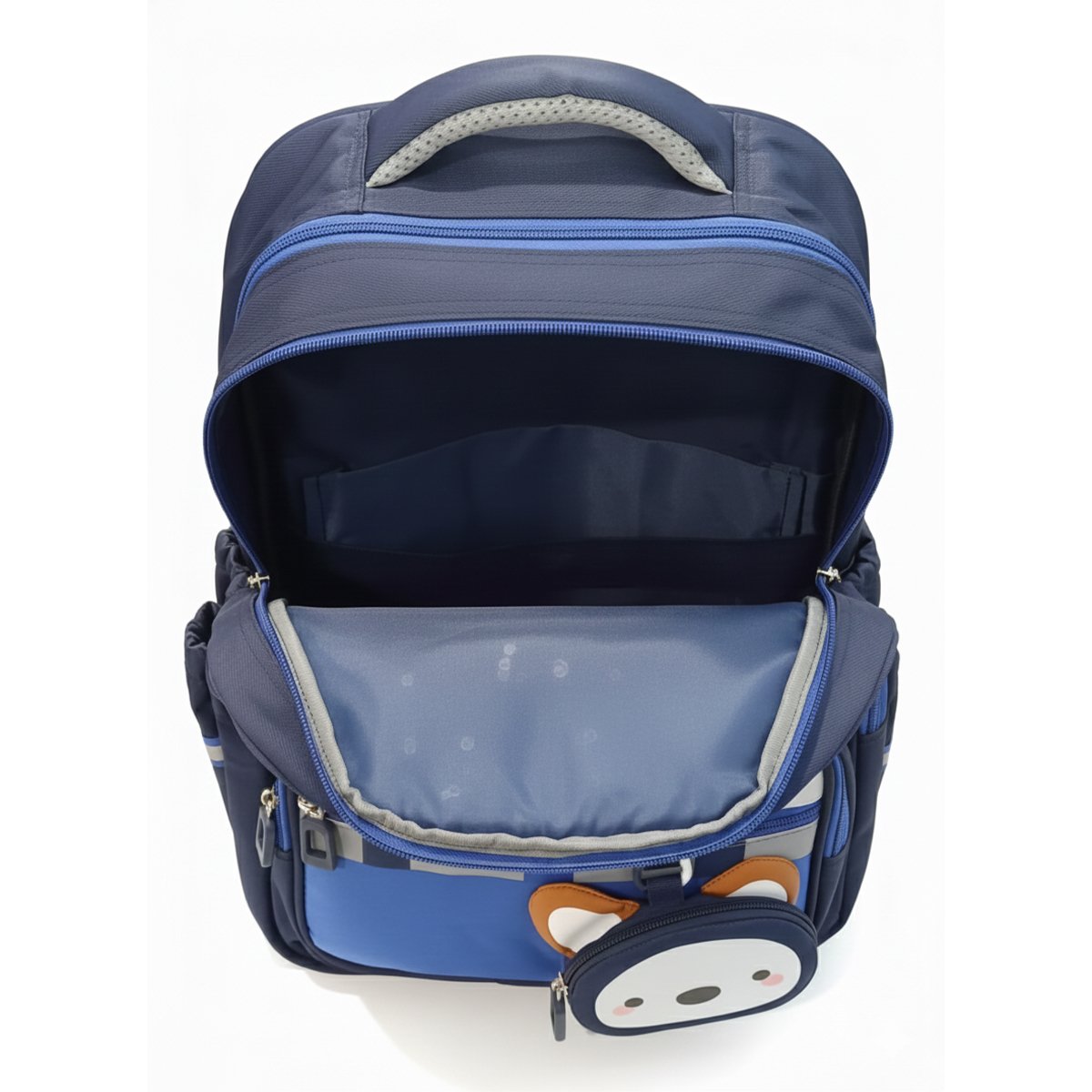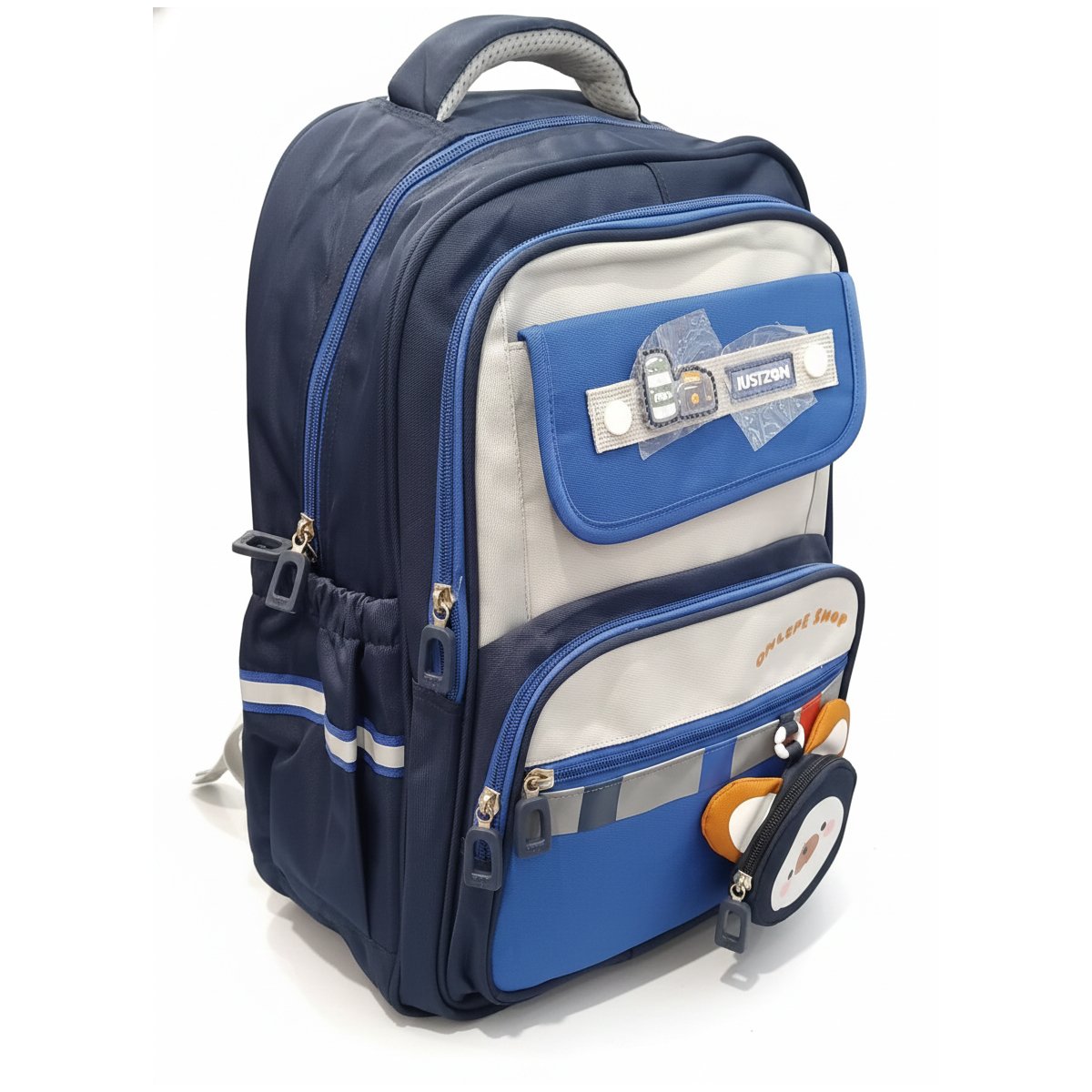 Make school days fun and organized with this adorable kids backpack featuring a cute cartoon character design and vibrant blue color. Designed with multiple zippered compartments, side mesh pockets, and a spacious main compartment, this lightweight school bag offers plenty of room for books, lunch boxes, and daily essentials. Padded shoulder straps and a comfortable top handle ensure easy carrying for all-day use. Perfect for preschool, kindergarten, elementary school, travel, and outdoor activities. Durable, stylish, and practical for boys and girls.