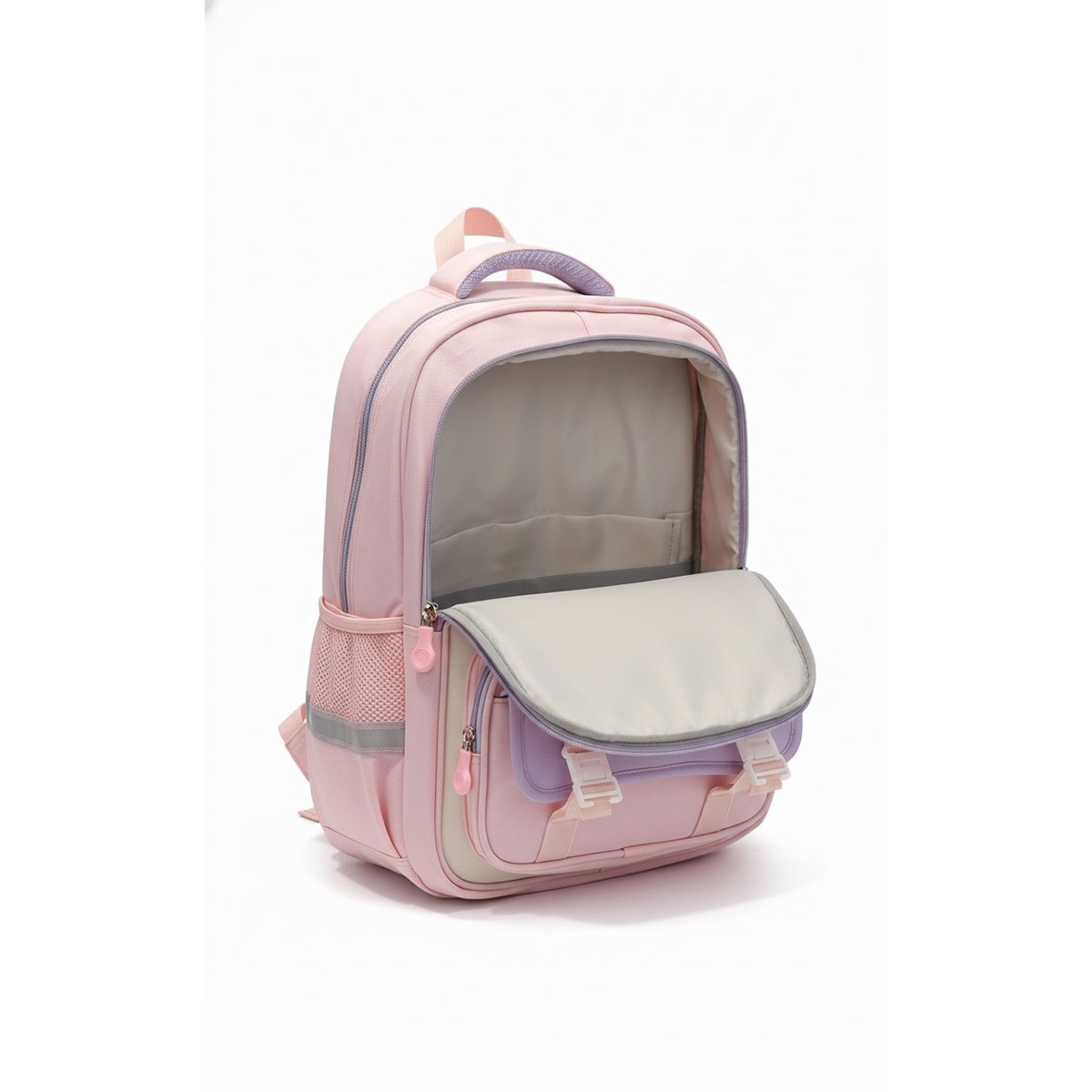 ✅ Spacious & Organized Storage – Large main compartment for books and folders, front zip pockets for small essentials, plus side pockets for water bottles.
