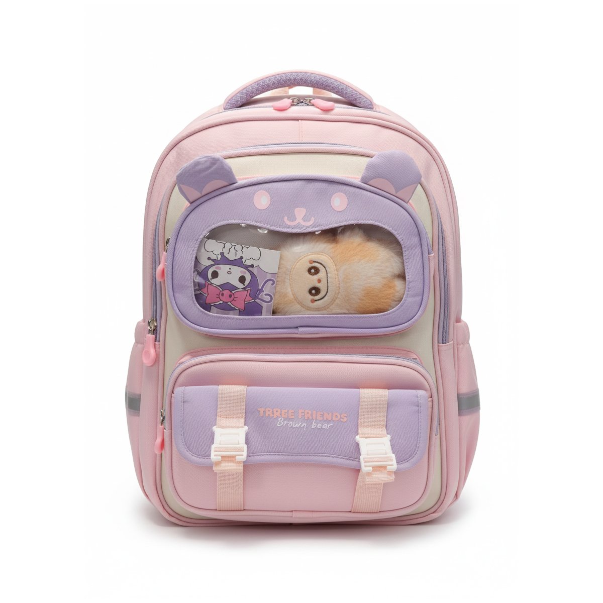 Brighten up school days with this adorable pink girls backpack featuring a cute bear design and playful pastel accents. Designed with multiple zippered compartments, side pockets, and a spacious main section, this lightweight school bag keeps books, snacks, and essentials neatly organized. Comfortable padded shoulder straps and a breathable back panel ensure easy all-day carrying. Perfect for preschool, kindergarten, elementary school, travel, and everyday adventures.